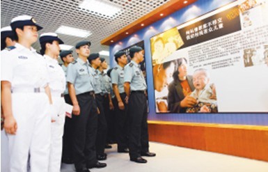 五月十二日,解放军官兵在海口会展中心观看展览。本报记者 宋国强 摄