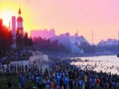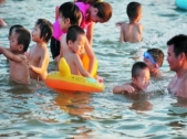 ▲游客市民端午节纷纷到假日海滩“洗龙水”。 本报记者 李汉仁 摄