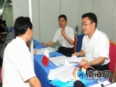 6月23日,海口市委、市政府领导干部和政法系统领导干部联合大接访活动在海口市会展中心举行。图为省委常委、市委书记陈辞(正中)在接访群众。(通讯员邱阿宇摄)