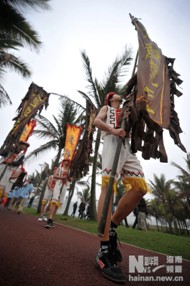 祭海大典开始前,数百人组成的彩妆巡游队伍向人们展示了南海龙王幡旗、天后娘娘幡旗、水尾圣娘幡旗、小幡旗等,八仙过海、西游记等极具特色的表演队伍吸引了众多游客和市民前来参观巡游。