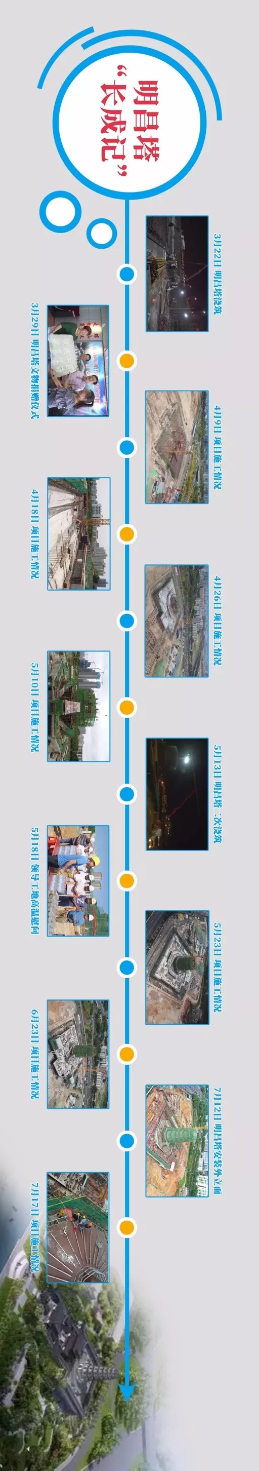 在明昌塔已经封顶了,虽然不是在原址上重建,但他希望不久后明昌塔重现昔日“英姿”,弥补他记忆中那半截的缺陷。“明昌塔建成开放后,我还要到塔上去乘凉呢。”文国材眼中满是期待。他说,到时候他会带上孙子一起上去,跟孙子讲讲明昌塔的前世今生。