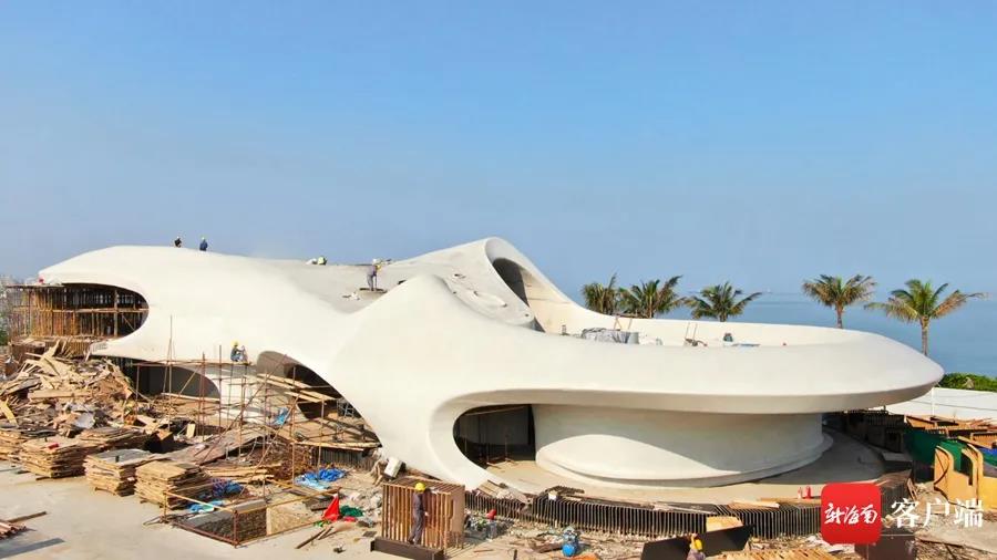 2月15日上午工人们忙着拆除最后一块框架海口湾3号驿站露出芳容,
