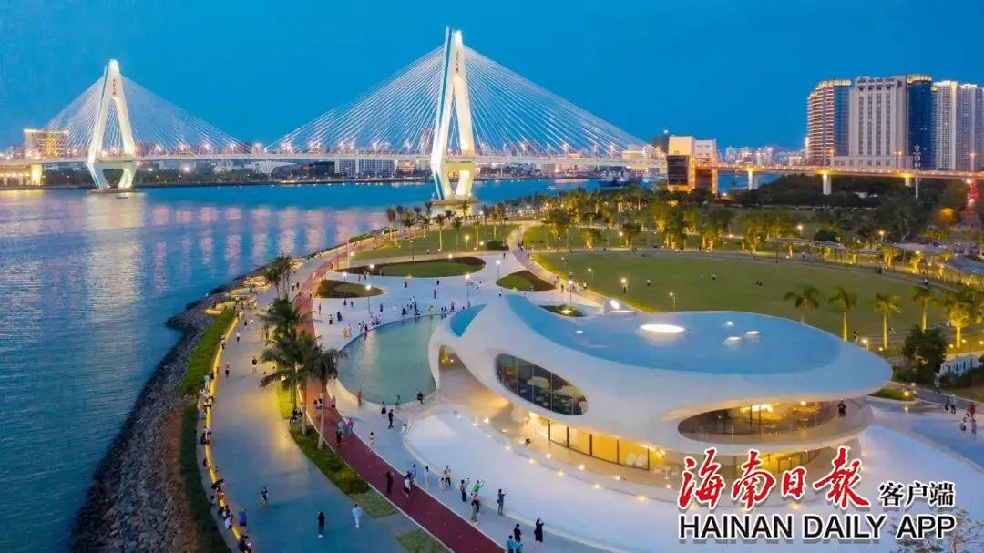 海口湾外滩如今已成为网红打卡点,这里有酒馆清吧、美食佳肴、街头艺人,这里海天一色,与雄伟的世纪大桥相交融。在落日的余晖下,看绚丽的火烧云和返航的轮渡,拍摄甜蜜浪漫的瞬间,体会滨海城市特有的夜生活。这里也是海口的一张名片,美丽的夜景赋予了海口人深深的归属感和幸福感。