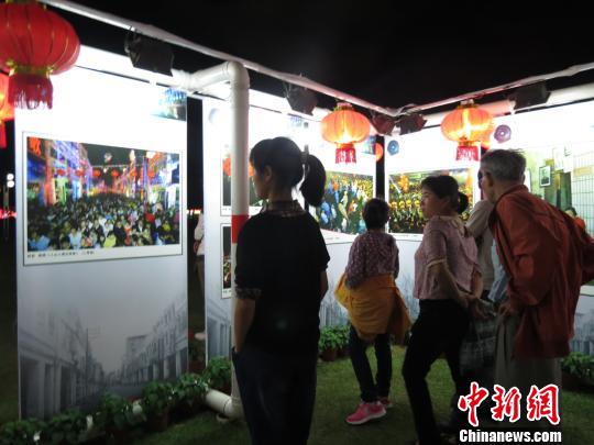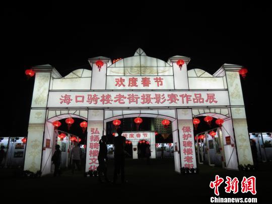 海口骑楼老街摄影赛作品灯展吸引了不少游客观看。 张茜翼 摄