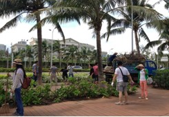 为尽快恢复美丽西海岸的原貌,9月20日,在省委省政府的正确指挥和市委市政府的精心组织和深切关怀下,市委宣传部、市文明办组织开展了大型志愿服务行动。活动从第11支队开始,到永万路、观海台、印象海南、假日海滩至新国宾馆。为清除公共海滩上的杂物垃圾,志愿者们放弃周末休息时间,执帚拎袋,逐寸清扫,绵延数公里的海滩上,随处可见志愿者俯身劳作的身影。