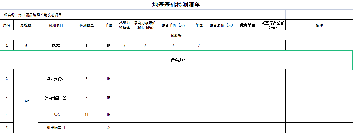 抽检试验桩和工程桩数量最终数量按照现场实际检测数量计,并根据国家发改委、建设部下发〖2002〗10号《工程勘察设计收费标准》及参照海南省现行定额计算运输综合单价结算检测费用。