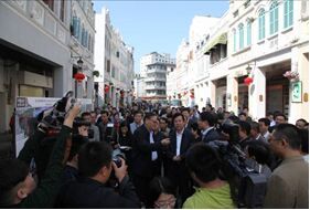 1月30日上午,在海南省委常委、海口市委书记陈辞,海口市市长倪强,常务副市长袁光平等海口市四套班子领导陪同下,海南省委常委、三亚市委书记张琦带领三亚市四套班子领导考察了海口骑楼老街。海旅集团董事长、党委书记顾建,总经理赵爱华、副总经理赵书良、总工程师刘涛等全程陪同。