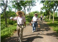 当日虽然骄阳似火、高温难耐,海旅党员志愿服务队到达帮扶村后立即兵分两队开展服务活动。一队志愿者集中打扫帮扶村巷道,清理路边垃圾;另一队则到田间为帮扶村种植的莲雾等作物清除杂草;大家都全力投入劳动,无人偷懒懈怠。