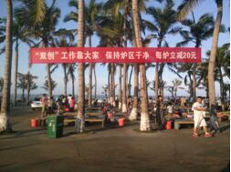 为鼓励市民积极参与“双创”工作,改善假日海滩烧烤园环境卫生,海旅集团下属海口假日海滩公司推出“保持炉位干净,立减20元”的新举措。通过口头宣传、悬挂横幅、粘贴告示、树立提示牌的方式将优惠措施告知游客。同时每个烧烤炉区配置垃圾回收桶,工作人员现场不断引导、宣传。此项措施推出后收效显著,据统计,中秋夜自觉清理炉位的游客比例达到了80%,不仅教育了市民游客,宣传了“双创”,也极大缓解了假日海滩烧烤园区域的清洁压力。下一步,假日海滩公司将继续加大优惠政策,以信息登记的方式,对受到过奖励的游客再次消费时给与价格优惠,继续鼓励市民游客参与。