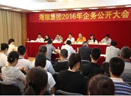 4月13日上午,海旅集团组织召开了2016年第一季度企务公开大会,集团董事长办公会成员、集团本部主管级(含)以上人员、各下属全资子公司副经理级(含)以上人员及员工代表共85人参加了会议。
