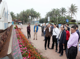 调研组一行从假日海滩中心广场沿椰林长廊一路行至观海台,调研途中,海旅控股集团董事长杨晓峰就假日海滩旅游区建设管理情况作介绍,并对俞教授提出的海滩投入情况等问题一一作答。冯鸿浩副主席在肯定沙滩沿线环境卫生情况的同时,提出除在沙滩配备垃圾桶的基础上还应在步行道道路一侧配备垃圾箱的建议。