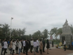 在白沙门渡海作战纪念碑前,海旅控股集团的干部员工为革命烈士敬献花篮、鲜花,向渡海作战牺牲的革命烈士默哀、鞠躬,祭奠革命先烈的英灵,深切缅怀革命先烈的丰功伟绩,坚定了大家继承先烈的革命遗志,自觉培育和践行社会主义核心价值观,不忘初心,继续前行的决心。