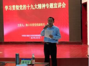 为深入学习贯彻党的十九大精神,落实学习党的十九大精神"六进" 要求,根据海旅控股集团学习宣传贯彻党的十九大精神实施方案,11月27日下午,海旅控股集团党委开展党委理论中心组(扩大)学习活动,邀请海口市委党校陈纯英副校长专题宣讲党的十九大精神。专题宣讲会在新落成的海口帆船帆板训练基地大楼一楼会议室举行,由集团党委副书记、纪委书记秦有军主持。集团领导班子成员、集团中层管理干部和集团本部党支部全体党员以及海口帆船帆板训练基地的主要领导共93人参加了宣讲会。