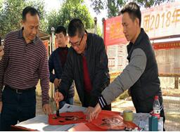 在清泉村委会前的大榕树下,杨晓峰董事长和秦有军书记现场即兴挥毫泼墨,以“书写春联,送福到家”的形式为村干部和贫困户们送上海旅控股集团2018年的新春祝福。随后,杨董事长亲自将“平安富贵财源进,万事如意满门春”的春联送到贫困户蒙传文手中,向30家贫困户发放大米和食用油各30件,祝愿清泉村的困难群众在2018年齐心协力,努力致富早日奔向小康。