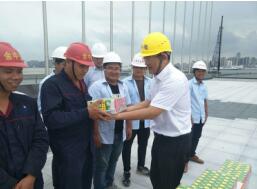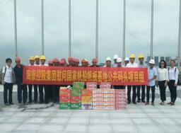 9月28日,海旅控股集团党委书记、董事长杨晓峰带队,党委委员、副董事长秦有军,董事长助理、市中旅董事长陈佩福,集团工会联合会主席赵欣、总经理助理兼工程部经理吴立东一行,先后到国家帆船帆板基地公共游艇码头项目、海口市人才公寓项目、海口市五化工程立面改造一期项目(首力大厦标段、星河广场标段)和综合环境整治三角池片区湖心岛项目四个在建项目工地,慰问持续奋战在重点项目工地上的一线工作者,并送上八宝粥、方便面和菊花茶等慰问品。