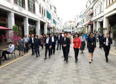 2018年11月26日上午,香港李嘉诚基金会执行董事、维港投资创办人周凯旋携考察团一行到骑楼老街参观考察。考察团一行先后参观了风貌展示馆、中山路、还客1921、邱氏老宅、椰雕文化馆,详细了解海口骑楼老街的历史背景、风土人情、建筑修缮保护及经营业态模式。海口市副市长龙卫东全程陪同。