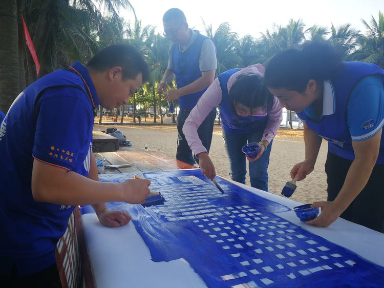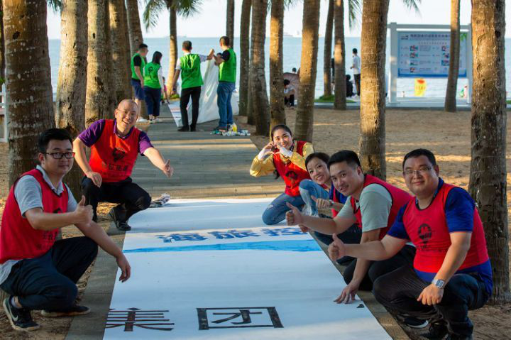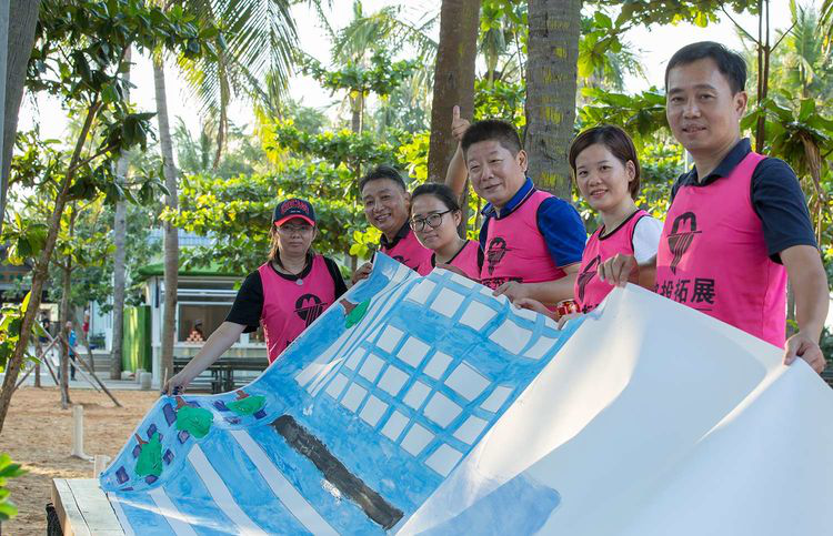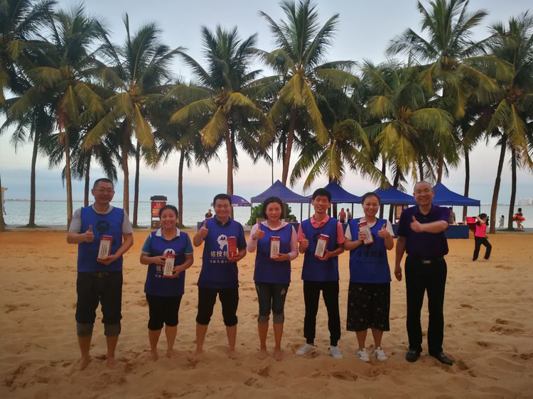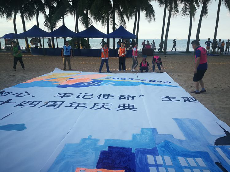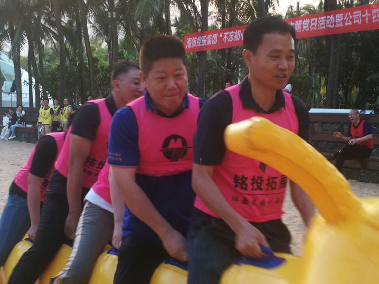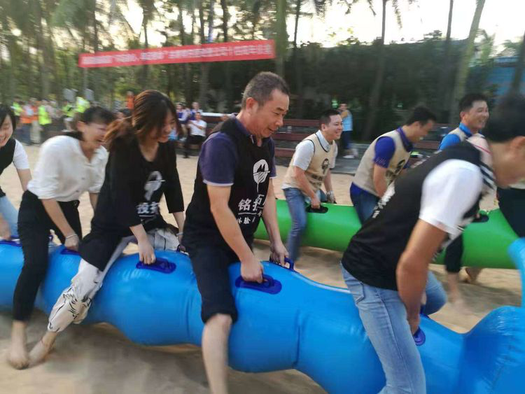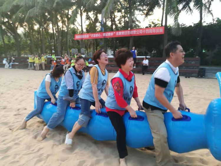 在假日海滩沙滩排球场,集团员工分成了10队开展了我为集团绘宏图,毛毛虫接力跑等拓展活动。