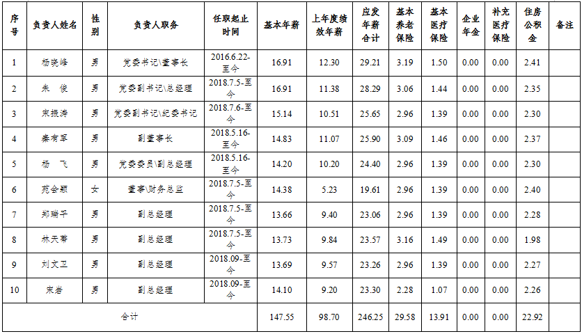 (一)2019年度集团领导工资、绩效、相关补贴发放统计(单位:万元)