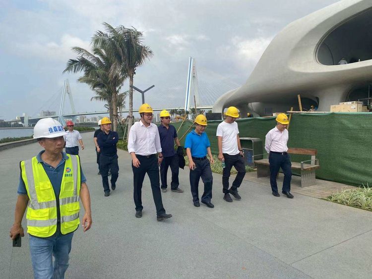 2021年3月8日下午,市国资委党委书记、主任陈力到海口湾畅通工程3号高标准驿站现场调研。市国资委副主任罗宗标、海旅集团副总经理林天蒂、工程部经理何声宝、北京益汇达等参建单位负责人陪同调研。2021年3月8日下午,市国资委党委书记、主任陈力到海口湾畅通工程3号高标准驿站现场调研。市国资委副主任罗宗标、海旅集团副总经理林天蒂、工程部经理何声宝、北京益汇达等参建单位负责人陪同调研。